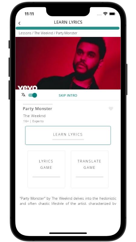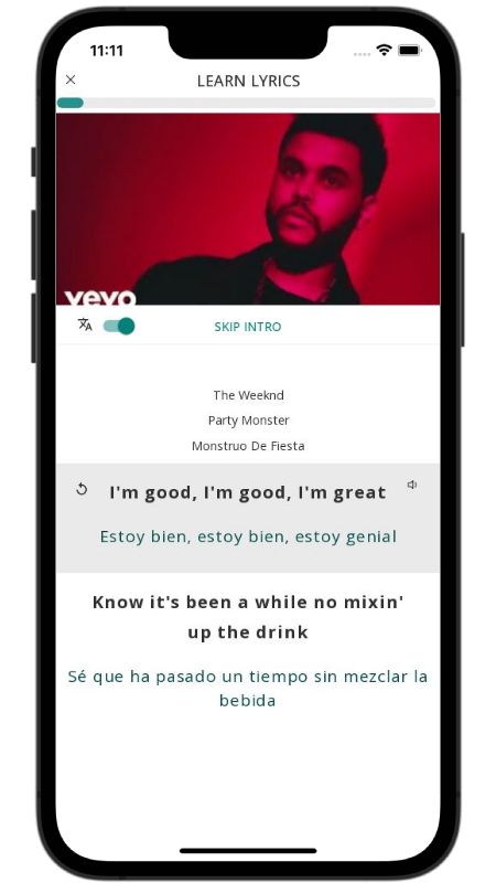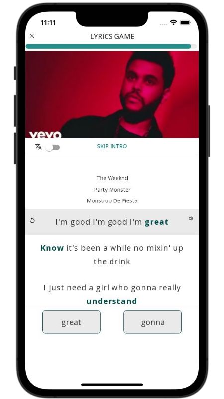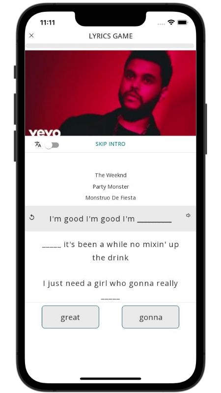 In addition to reading lyric translations, you can now learn English with music and lyrics from your favorite artists.