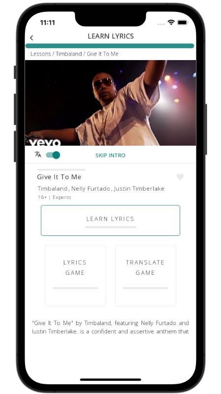 In addition to reading lyric translations, you can now learn English with music and lyrics from your favorite artists.