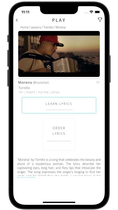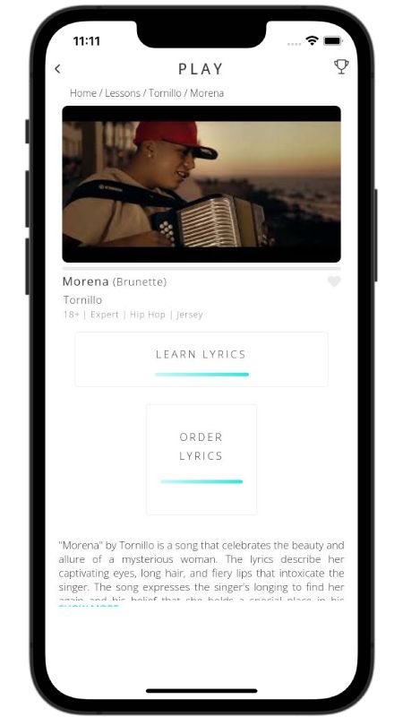 Morena fuses gritty hip hop verses with a cumbia swing to tell the story of a spell-binding encounter in the barrio. Tornillo spots a dazzling dark-skinned dancer whose long hair, red-hot lips, and hypnotic moves make everyone’s head turn. The looping chorus repeats his wish to possess her captivating eyes, capturing that rush of desire you feel the moment someone steals the spotlight on the dance floor.