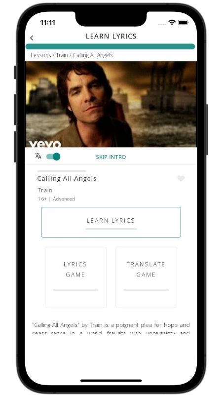 In addition to reading lyric translations, you can now learn English with music and lyrics from your favorite artists.