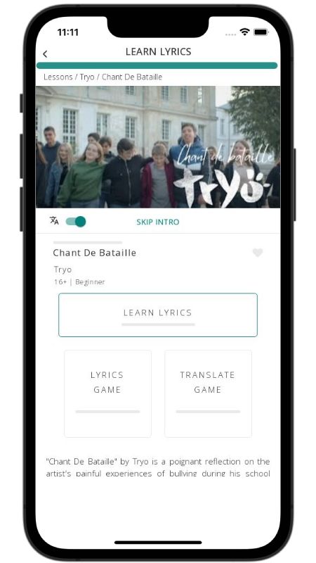 In addition to reading lyric translations, you can now learn French with music and lyrics from your favorite artists.