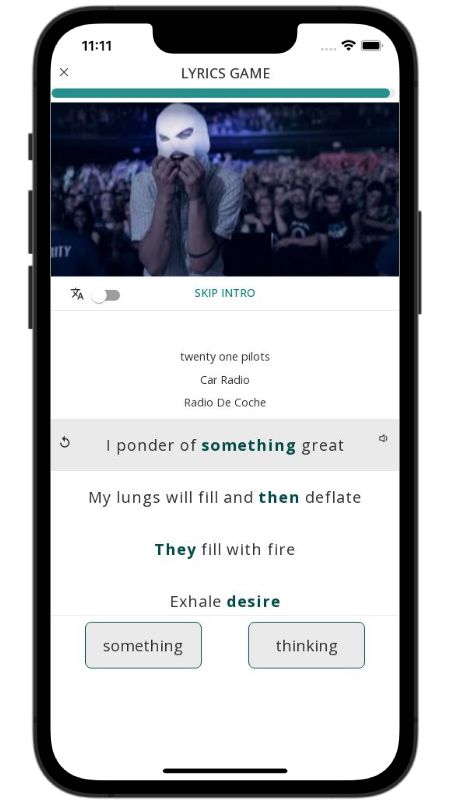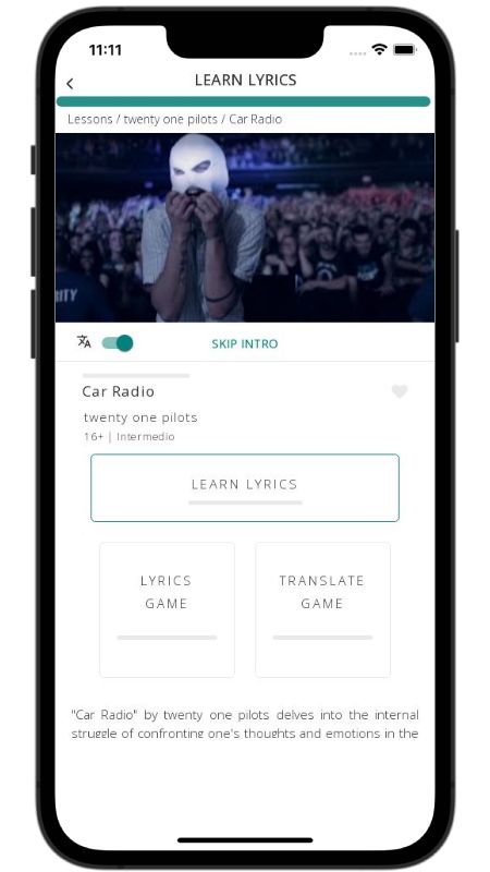 In addition to reading lyric translations, you can now learn English with music and lyrics from your favorite artists.