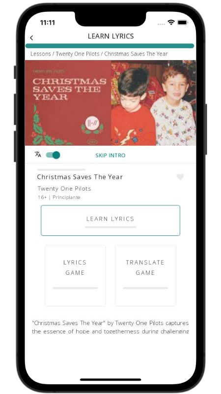 In addition to reading lyric translations, you can now learn English with music and lyrics from your favorite artists.