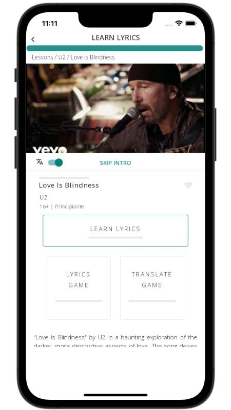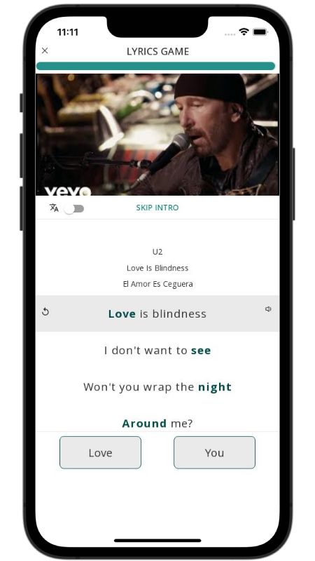 In addition to reading lyric translations, you can now learn English with music and lyrics from your favorite artists.