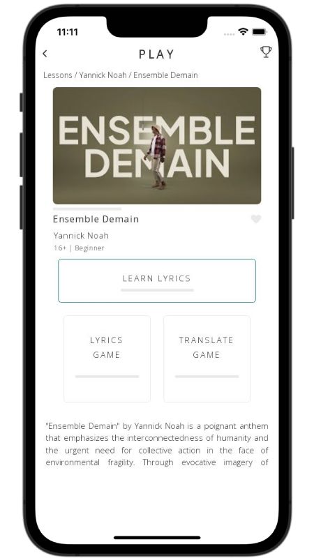 In addition to reading lyric translations, you can now learn French with music and lyrics from your favorite artists.