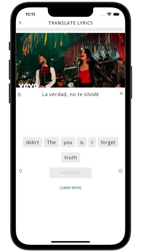 In addition to reading lyric translations, you can now learn Spanish with music and lyrics from your favorite artists.