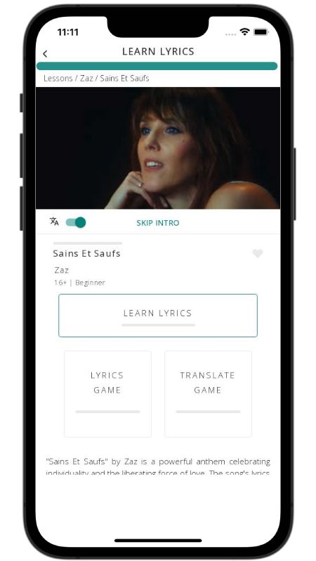 In addition to reading lyric translations, you can now learn French with music and lyrics from your favorite artists.