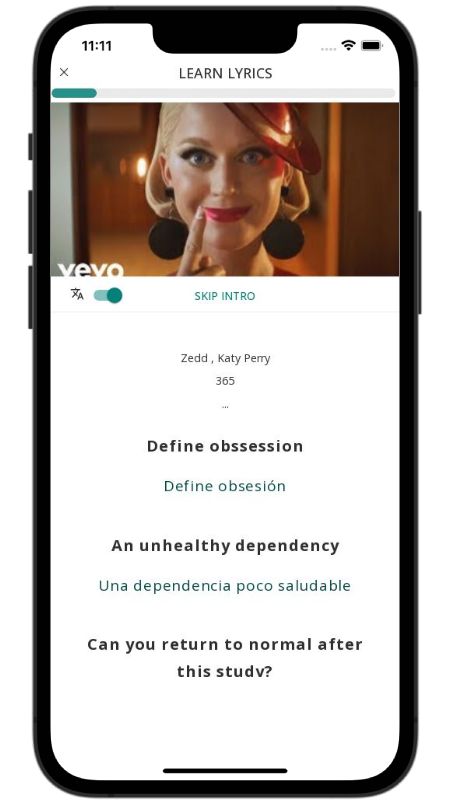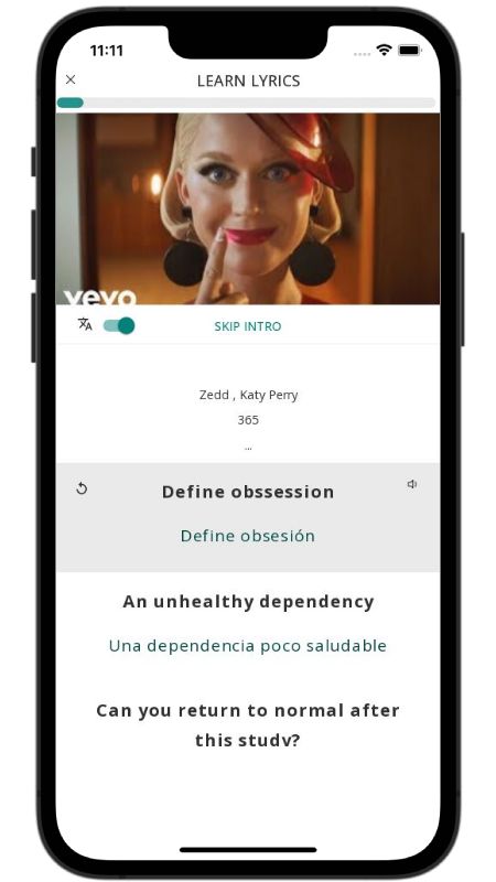 In addition to reading lyric translations, you can now learn English with music and lyrics from your favorite artists.